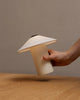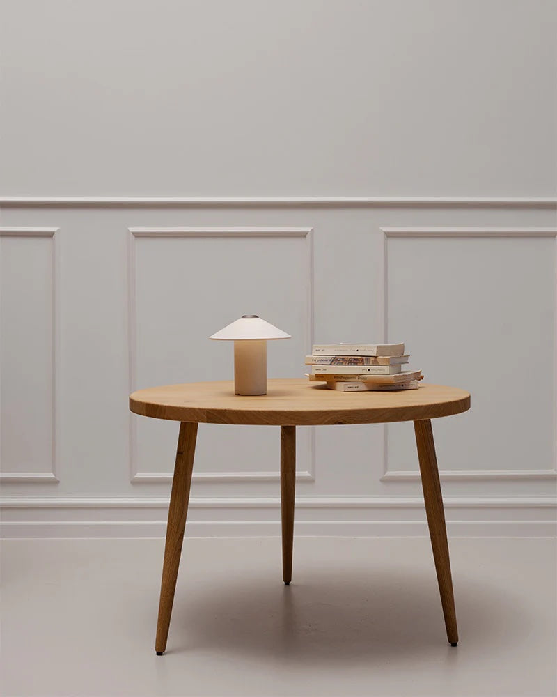 The design blends elegance and functionality with a versatile structure that complements any setting, whether adorning side tables or shelves. Its thoughtfully placed metal detail not only serves as a technical element, seamlessly connecting different parts of the lamp, but also doubles as a convenient switch.