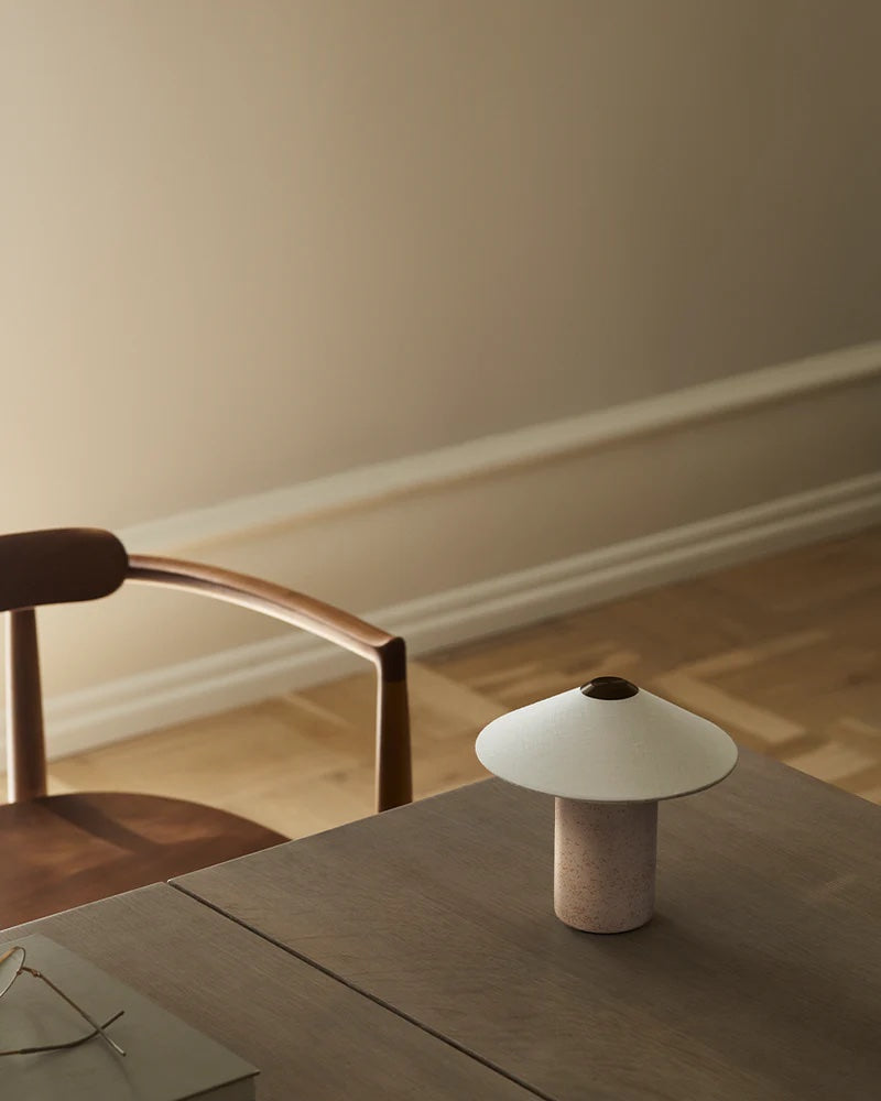 FUTÉ 180 is a new portable lamp designed by GamFratesi for LYFA that blend balance and materiality. Crafted from fabric, ceramic, and intricate metal details, this versatile lamp enhance any setting.